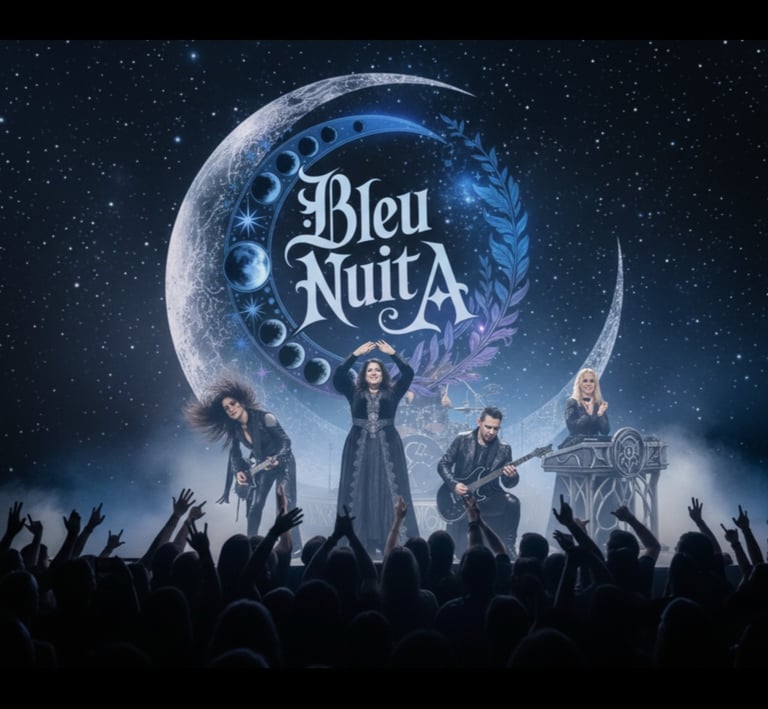Bleu Nuit A. is an electro-rock band born in 2021 in the Chalosse Landes, in the southwest of France. Their sound blends symphonic, theatrical, and alternative metal influences — guided by astrology and mythology — composing at the frontier between the sky and consciousness. Between stellar synths and lunar guitars, they weave soundscapes where myths, planets, and human emotions intertwine.